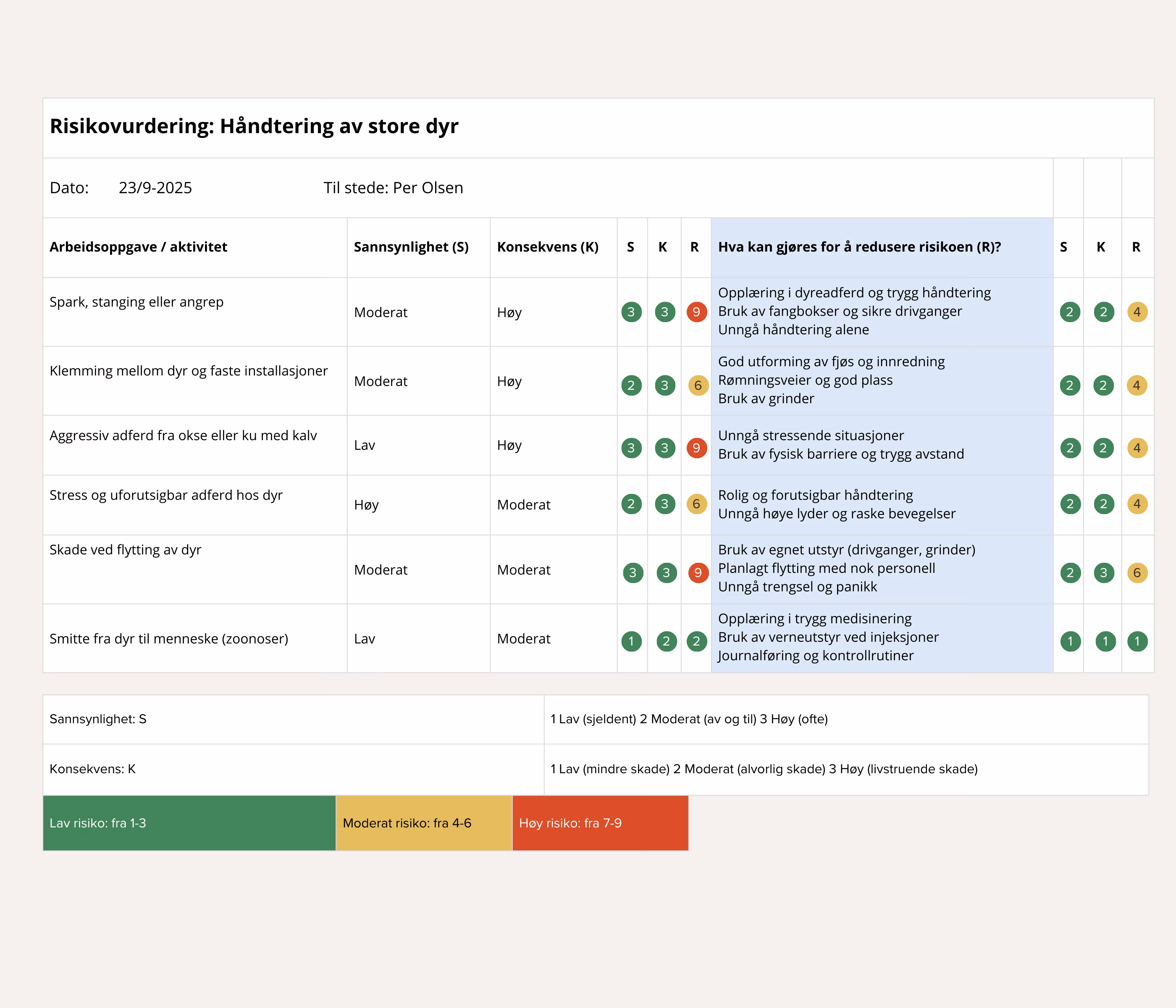 Som bonde står du overfor mange oppgaver som kan innebære risiko – enten det gjelder maskiner, dyr eller verktøy. En enkel risikovurdering hjelper deg å: